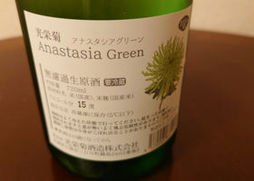 Today's sake is "Koei Kiku Anastasia Green" 😋.