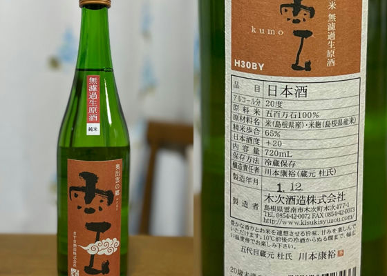 ひぃやん雲純米原酒生酒無濾過木次酒造Shimane2025-01-13T10:41:55.088Z1/8/2025家飲み部23ひぃやんSake of the Day (1/8) Okuizumo no Sato Kumo Junmai Unfiltered Nama Sake H30BY Rice:100% Gohyakumangoku Rice polishing ratio: 65 Alcohol content: 20 Sake meter: +20Japanese>English