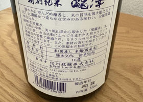 しーちゃん天狼純米吟醸原酒生酒無濾過Shinshu MeijoNagano2024-12-09T11:02:19.668Z12/9/2024家飲み部17しーちゃんI bought it because it was recommended by a liquor store called Moritaya in Nagano Prefecture.Japanese>English
