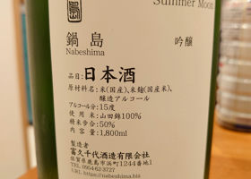 wishingwell鍋島summer moon富久千代酒造佐賀県2021-06-17T10:44:59.716Z35wishingwell開栓してから徐々に味が華開くワインのような所が鍋島の面白い所。微発泡。梨のような吟醸香。ほのかな甘味の後に酸味、そしてアルコールの苦味を感じます。口の中をさっぱりと流してくれるところが夏酒なんでしょうね!鍋島にもこのような表情が違うものがあるのかと奥深さを感じます。wishingwell開栓後、時間がたったら芳醇でふくよかで最初の印象と全然違います。口当たり柔らか酸味も多く美味しさが倍増です。