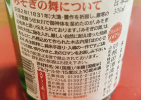 ようみそぎの舞純米Haneda ShuzoYamagata2024-01-28T09:15:17.454Z2023/12/2419よう纯米清酒采用菊内町出产的食用米 Honoka 224 酿造。 在菊之内的姐妹城市山形县鹤冈市的羽田清酒酿造厂酿造。 2023 年 7 月 16 日,在函馆回程途中于 Michi-no-Eki Misogi-no-Sato Kikonai 购买。日语>中文