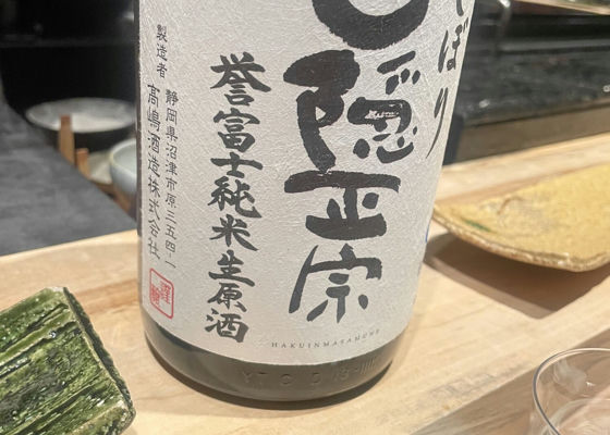 静岡市の和食屋さんにて④純米酒を混ぜた面白いお酒、とのこと。香り穏やかだけど米のバランス良いとのこと。 ※ヒラメのおさしみと共に。気温と水温が低くなり美味しくなっているとのこと。