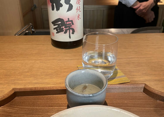 静岡市の和食屋さんにて①ソムリエさんがいらして、今日は1品ごとにお酒を出してもらうシステムに。(その分、量は少なめ)すっきりとした味わいで、フルーティーな香りで美味しい!